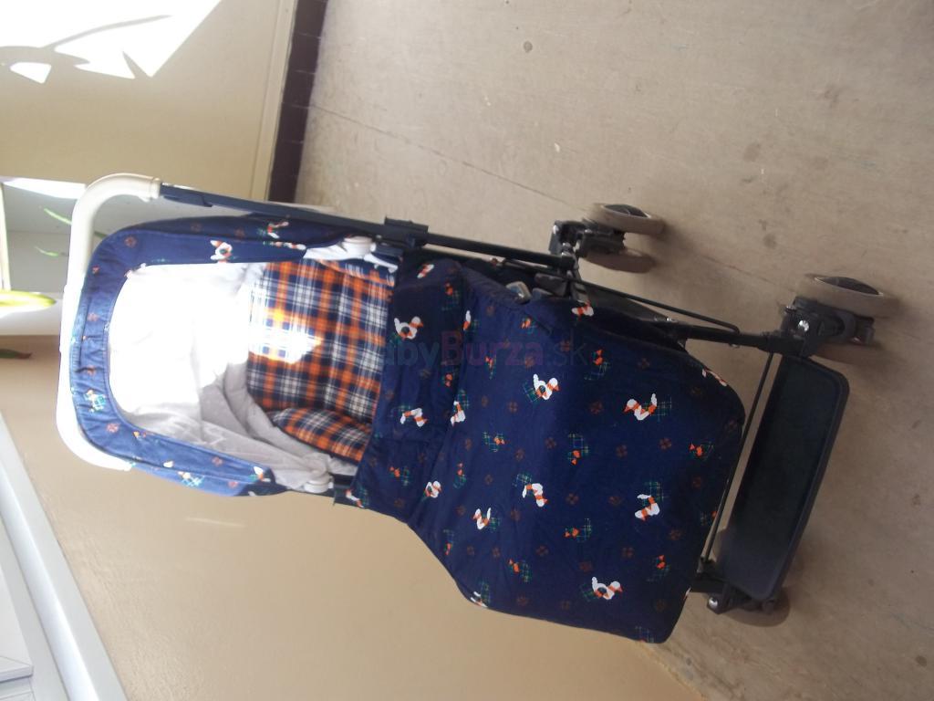 modrej farby s potlačou. Kočík je možné dať až do vodorovnej polohy a rúčka sa dá dať na obidve strany. Vynikajúci na cestovanie. Osobný odber - Bratislava 5